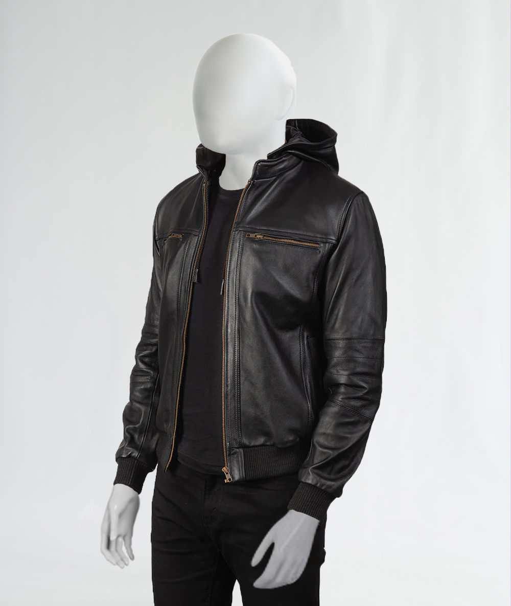 If you have been looking for a black leather bomber jacket that defines the real you, try out this unique mens black leather bomber jacket to narrate your personal style. It is perfect for all style enthusiasts who need an ideal layering option for all individuals. We are all passionate about fashion and want our outerwear to be a statement. That is why it is specifically designed keeping in mind the cold weather. This vintage black leather bomber jacket comes with a warm hood to provide you with all the protection and warmth you need. So if you are a versatile wearer, the Bouncer Biz Leather bomber jacket for men is a perfect choice.