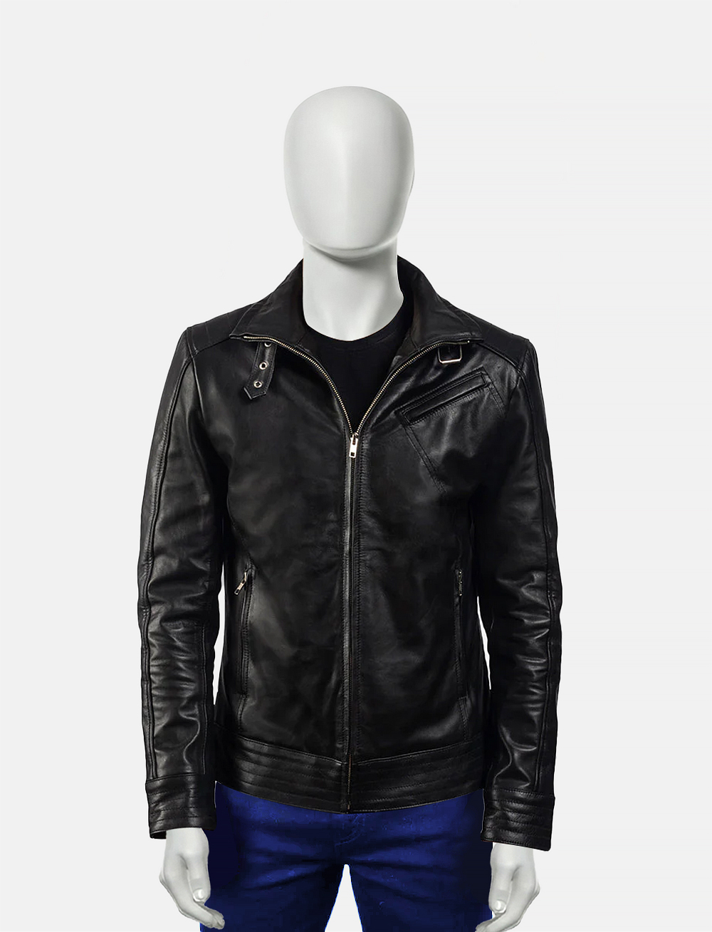 Making a bold statement with leather jackets can go awry; however, we are here to save the day. With our black leather moto jacket men, you can stand out from the rest of your biker crowd. Expertly designer and crafted with attention to detail, we have designed it for modern men. What makes this Classic black leather biker jacket different from all our products is its striking silhouette that comes with a collar belt, stitched lines, and extensive utility. It’s time to embrace the long-awaited adventure and timeless appeal that will definitely turn heads wherever you go!